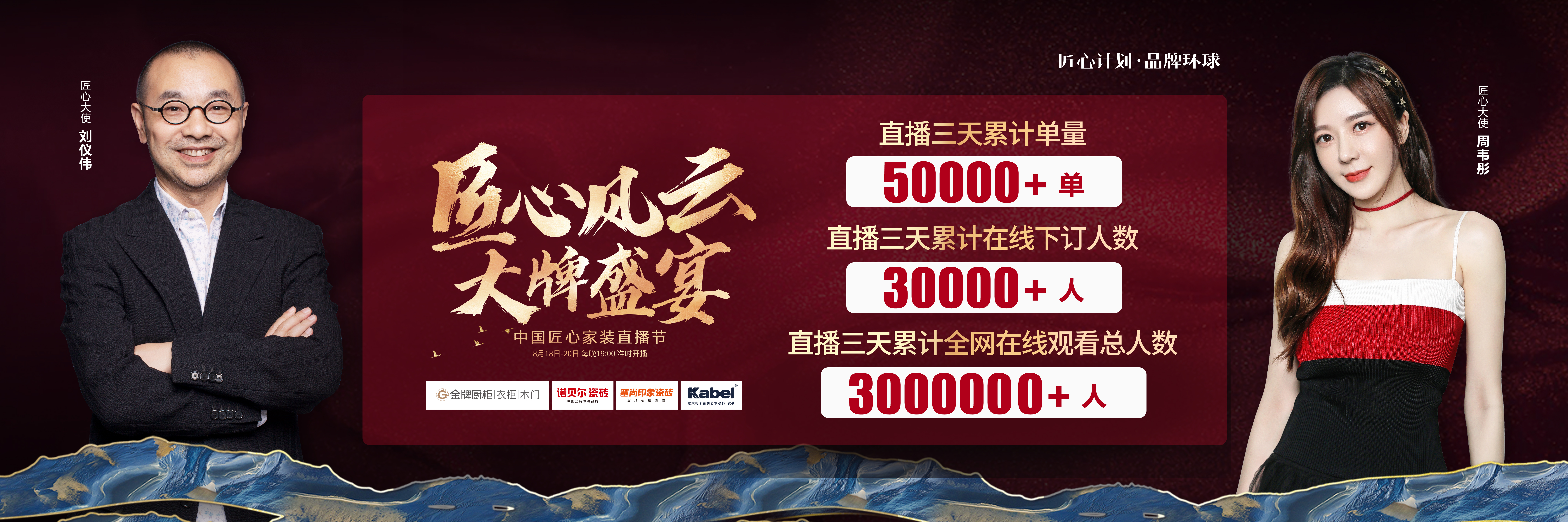 由银河galaxy厨柜、诺贝尔瓷砖、塞尚印象瓷砖、卡百利艺术涂料联合缔造,创赢科技系统支持全案营销执行的“匠心风云 大牌盛宴”中国匠心家装直播节于8月20日圆满落...